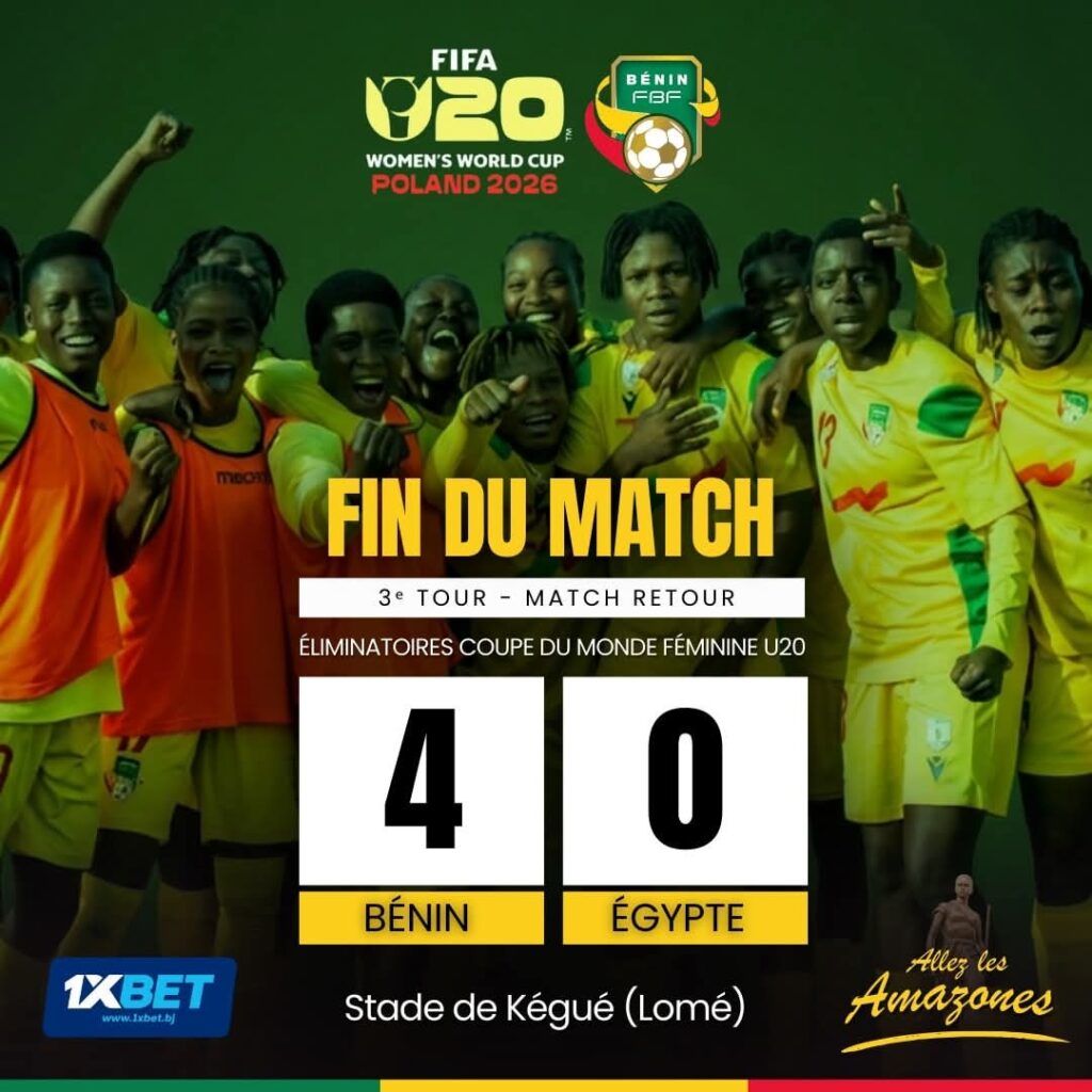 Les amazones U-20 du Bénin ont réussi à passer le troisième tour en s’imposant pour le match retour 4-0 à Kégué à Lomé face aux U-20 Egyptienne. Romaine Gandonou à elle seule a fait un triplé après l’ouverture de Yasminath.